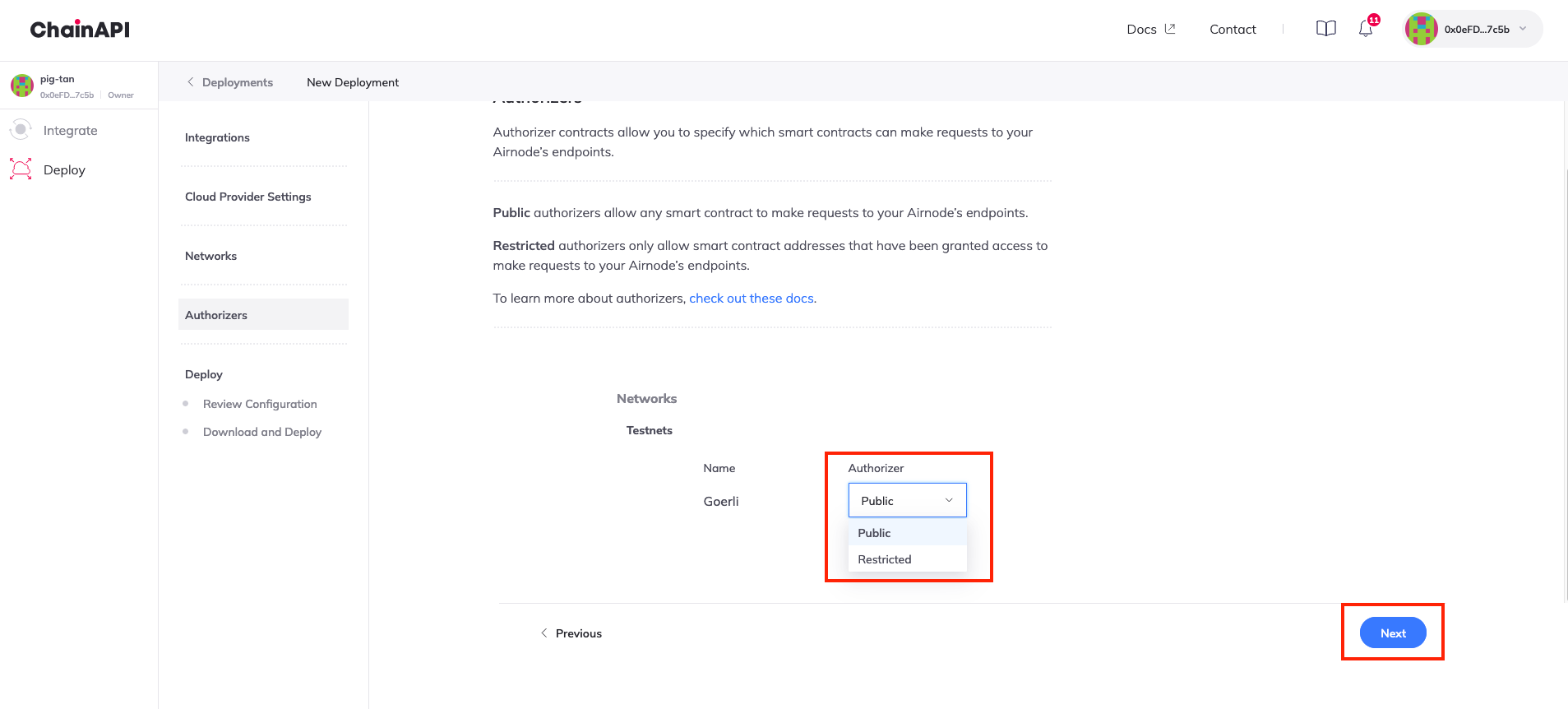 - Restricted Authorizers will only allow smart contract addresses that have been granted access to make requests to your Airnode.