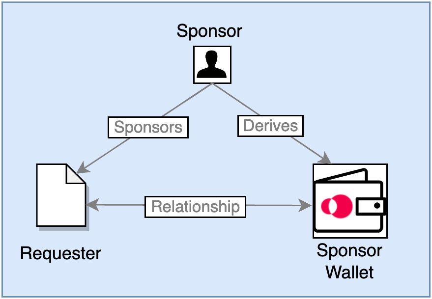 A sponsor specifies the public address (sponsorAddress) of an account from a mnemonic it owns and the on-chain requesterAddress of a requester to "sponsor a requester". This sponsorship is know to have, and be defined by, a sponsorAddress/requesterAddress pair.